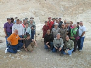 This is a picture of our group, and you can see what looks like a hole behind us. That's one of the caves where a portion of the scrolls were discovered in 1947.